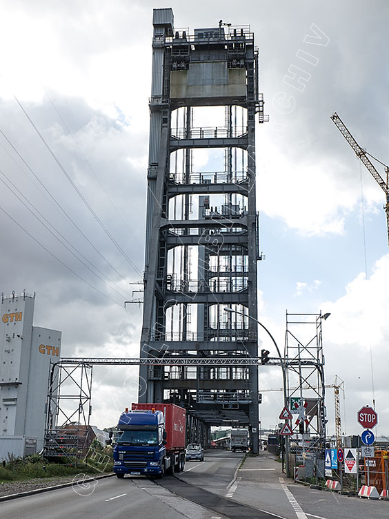 | Trucks crossing the lift bridge on Rethedamm in the Port of Hamburg, Germany. | Contact | Download | |||