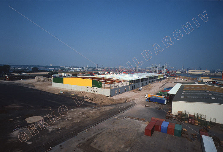 Construction of a warehouse in the Port of Hamburg, Germany.