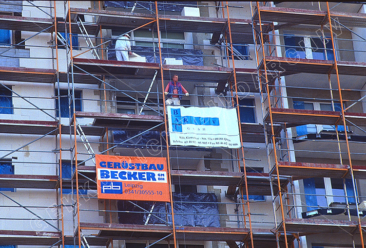 Scaffolding at an appartmentblock in Halle, Saxony, Germany.